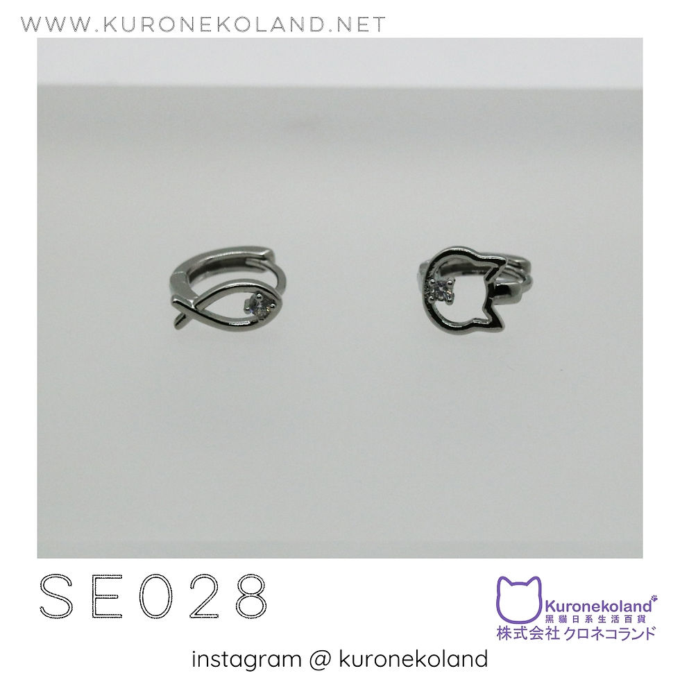貓貓魚魚不對稱長銀耳環 (SE033)